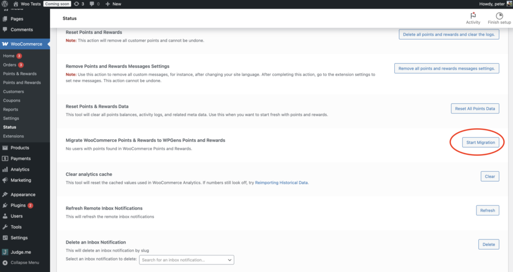 - Find the tool called “Migrate WooCommerce Points & Rewards to WPGens Points and Rewards“. Note that this tool shows up only if you have WooCommerce Points & Rewards plugin installed and activated.
